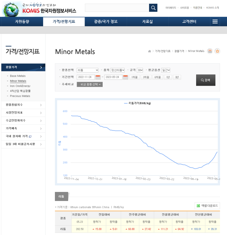리튬 가격 및 추이 보는 사이트 - 박순혁 작가님 응원!