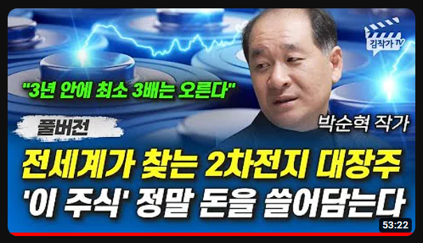 유투브 "김작가TV" [전세계가 찾는 2차전지 대장주 이 주식 정말 돈을 쓸어담는다]에 관한 요...