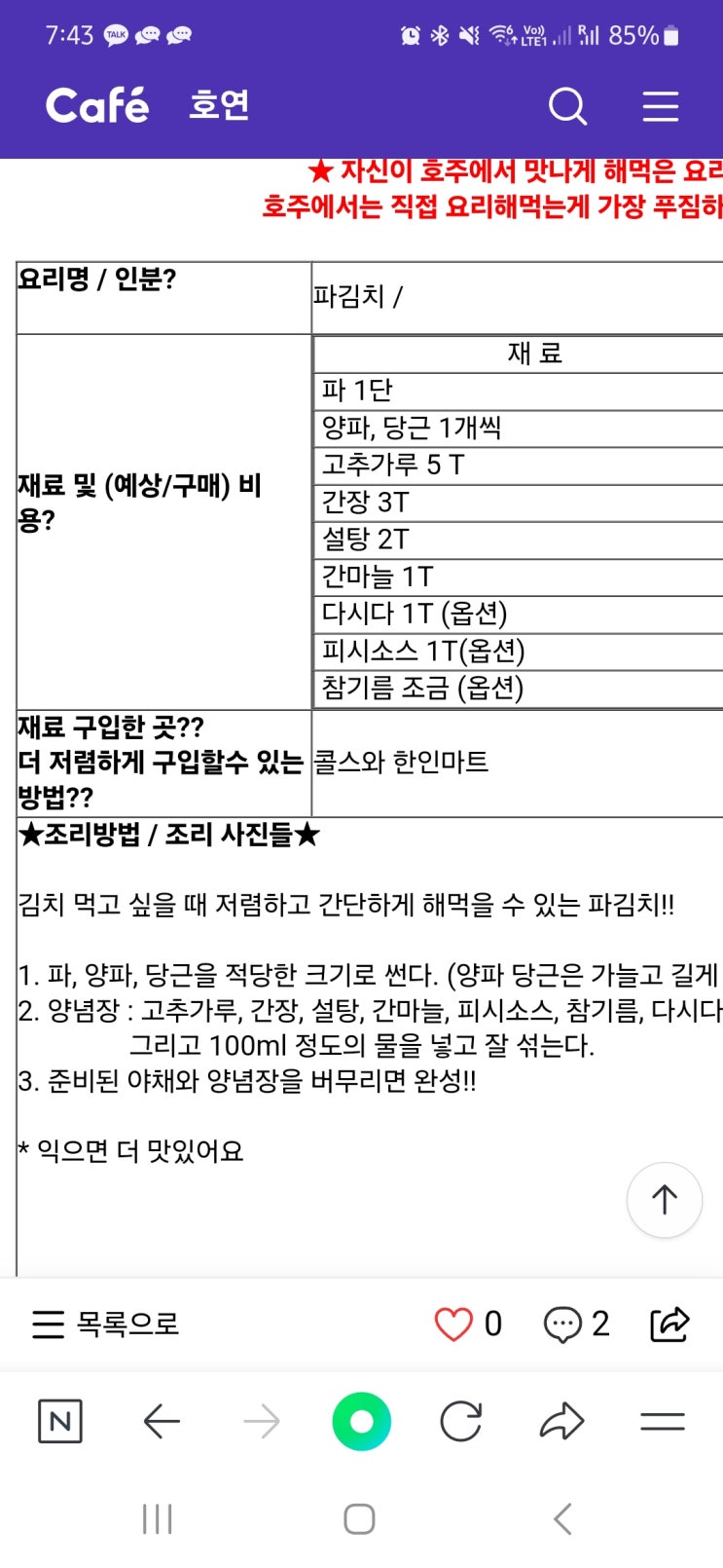 쪽파 200g 파김치 후기 (feat.우삼겹 솥밥, 짜파게티)