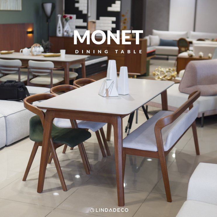 고무나무식탁의 깔끔함 패브릭식탁벤치의자로 더 우아한 '모네'