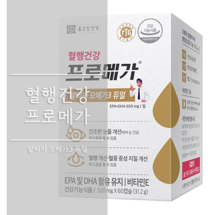 위의 링크눌러 제품을 확인하시고 구매해보세요! 종근당건강 프로메가 알티지 오메가3 듀얼 플러스 60정 리...