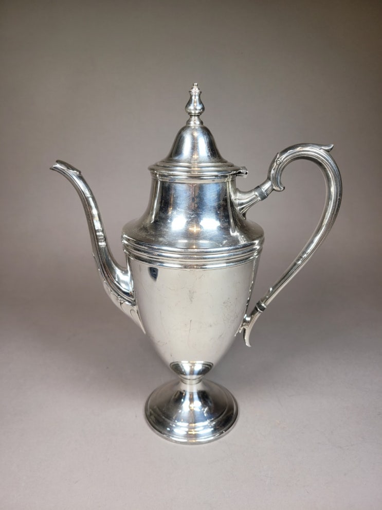 엔틱 실버플레이트 티팟 이에요 고블렛 쉐입에 고급스러운 수구 모양까지 엔틱 하고 예뻐요 세월감 약간 있...