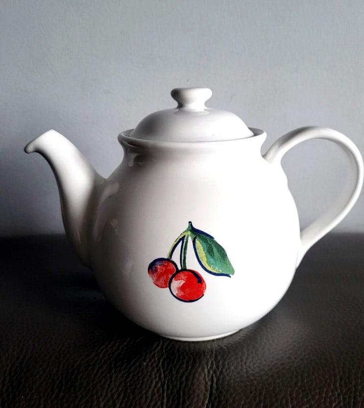 (완료)코닝웨어 상큼 체리 포세린 미듐 티팟