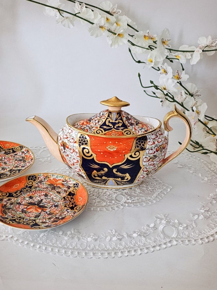 넘 아름다운 리본 이마리 모카 티팟 3545번? 영국 로얄 스테포드셔 대벤포트 (1808년에서 1870년 마크) ...