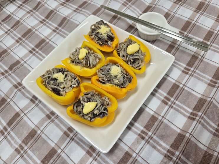 팽이버섯 in 파프리카_초간단 저칼로리 다이어트 요리 만들기