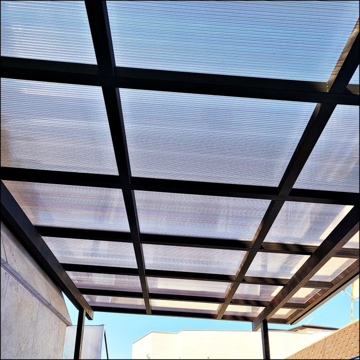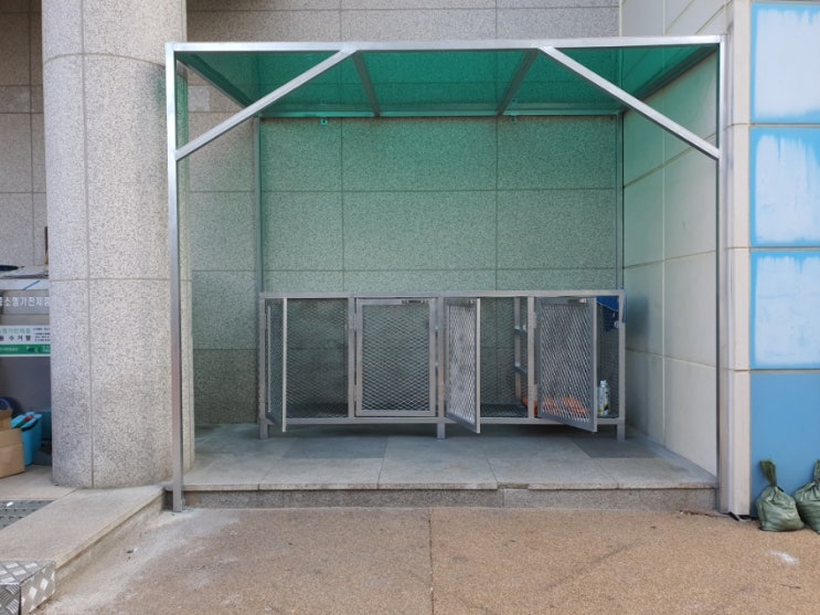 창고 측면 분리수거장에 렉산 폴리카보네이트 지붕 시공 & 가림막 설치