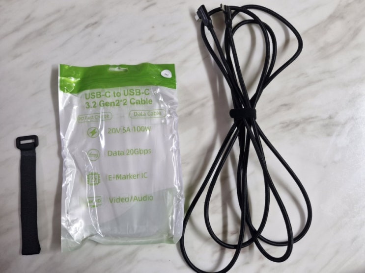 노트북으로 영상이나 자료를 옮길일이 많은데 ‘CtoC 100W 20기가 케이블’ 을 주문했어요 지퍼백 형식...