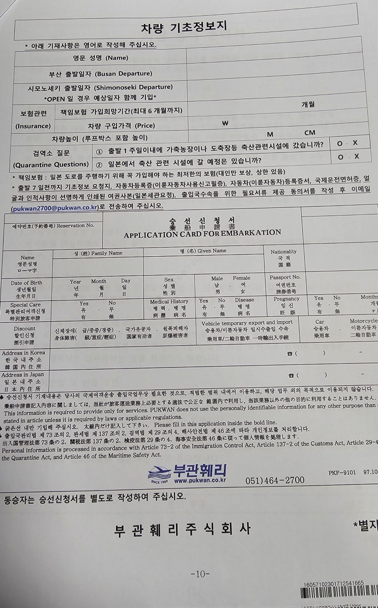 부관훼리선박 시모노세키 수속정보 / 일본 세관신고서 작성방법