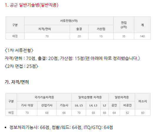 공군입대시 필요한 컴퓨터 자격증 가산점 안내 !