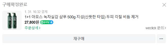 아모스 02 녹차실감 샴푸로 가려움, 비듬 한 번에 해결했어요