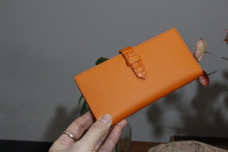 미니장지갑 오렌지컬러 수제지갑 주문제작 부산가죽공방