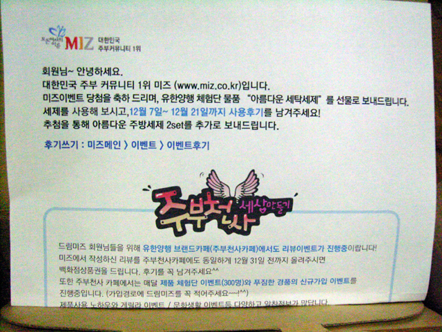 미즈에서 퀴즈이벤트에 당첨되었어요 기다리고 기다리던 세탁세제가왔습니다 ㅎ  ...