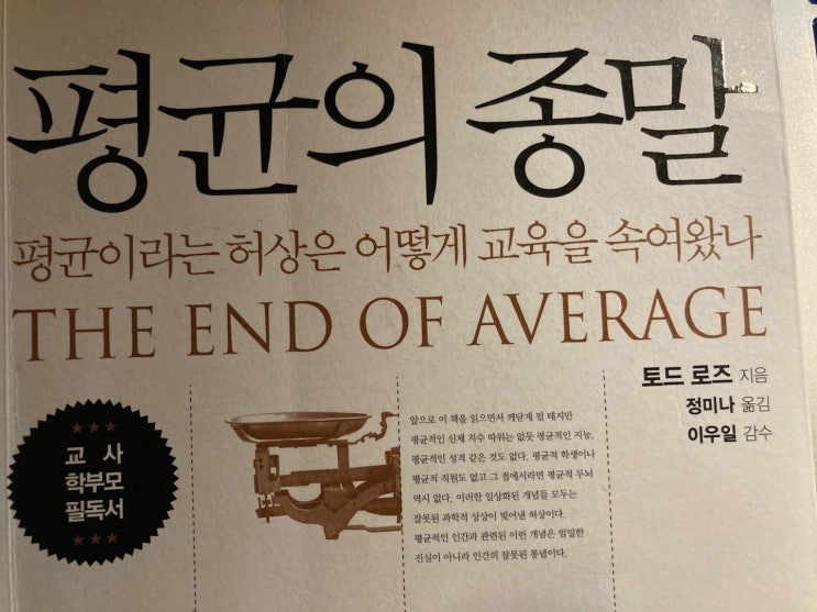 오늘 아시티스독서클럽에서 읽은 책, 토드로즈의 '평균의 종말' 오랫만에 읽은 매우 만족스러운 ...