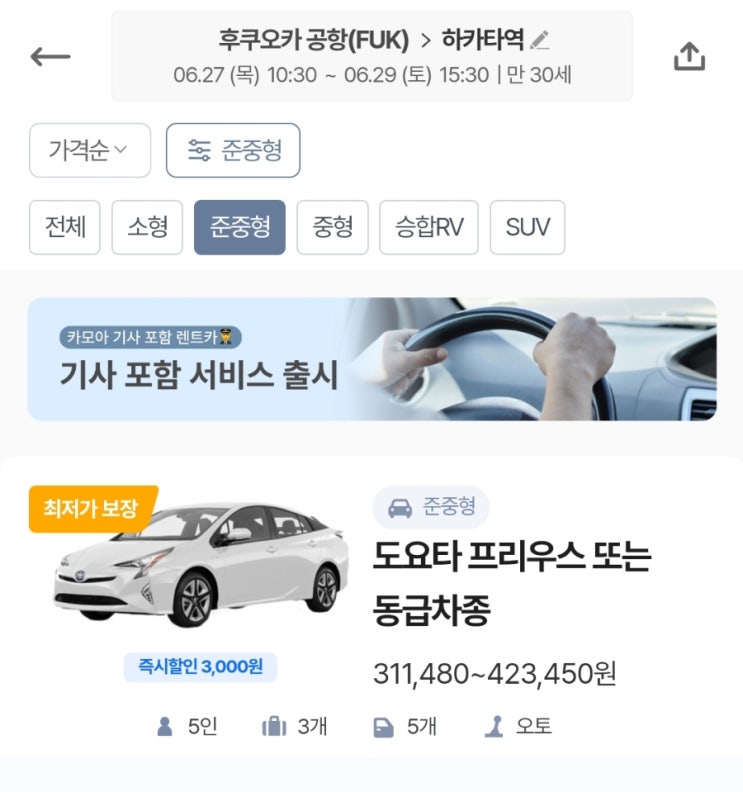 후쿠오카 렌트카 여행 내돈내산 최저가 예약 2박3일 비용