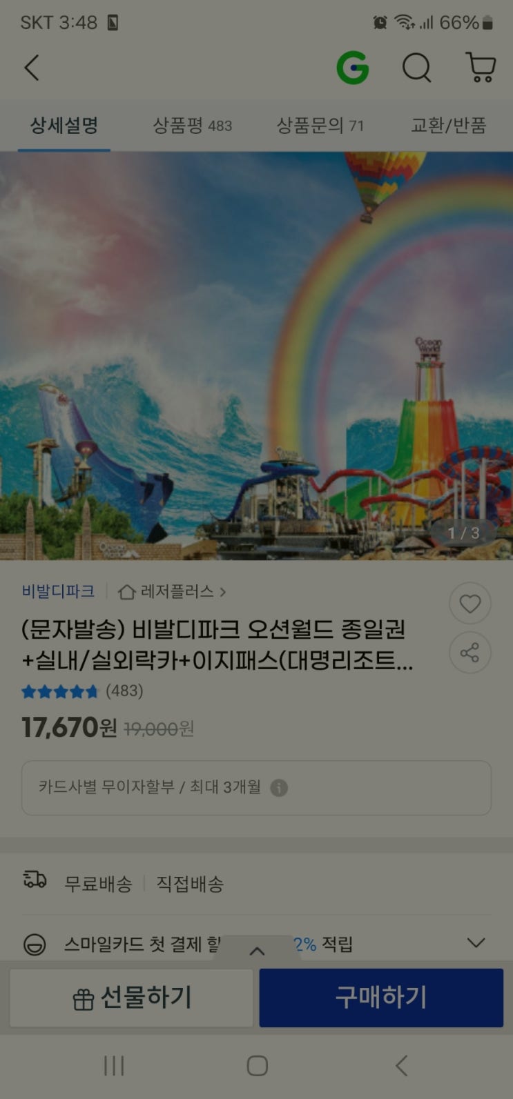 오션월드 다녀왔다 티켓은 네이버나 소노어플에서 사는 것 보다 지마켓이 몇백원이라도 저렴하게 할인하길...