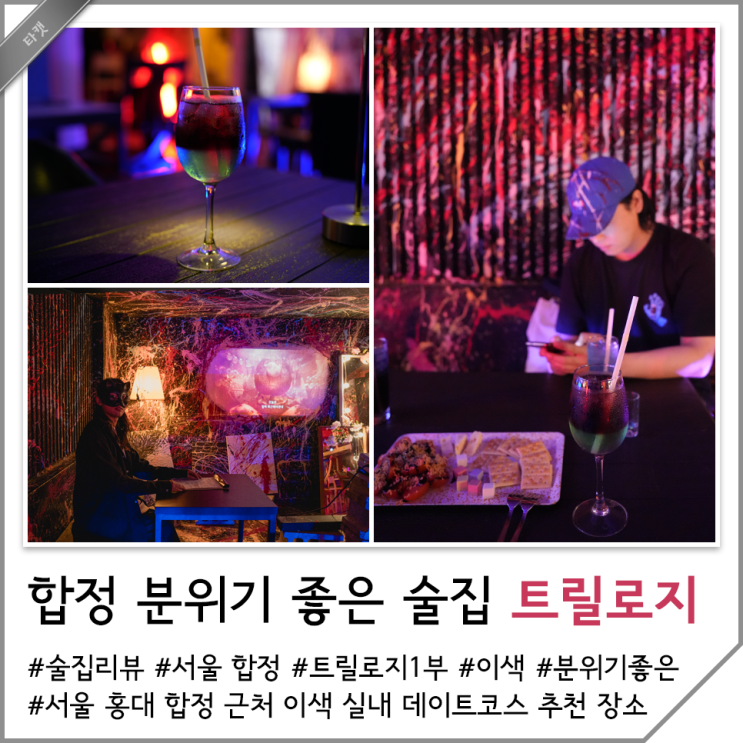 청춘들의 아지트 홍대거리의 힙스러움과 몽환적인 분위기를 담은 홍대 합정 근처 감성 술집 트릴로지 합정...