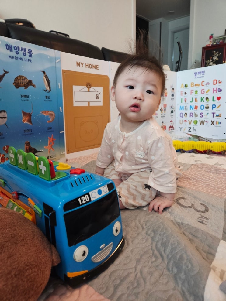 [꼬비+197일차] 앉아서 놀기/ 떡뻥 맛을 드디어 알아버림/ 세이펜 태극온펜 구입 결정