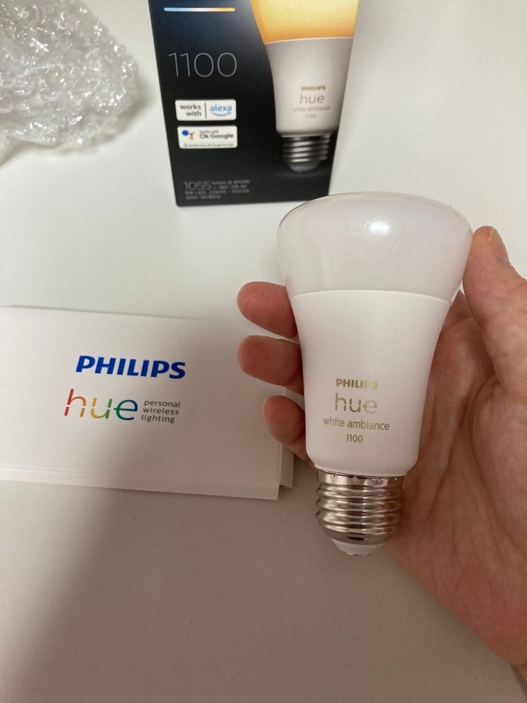 이번에 신기한 전구의 존재를 알게 되어서 구매했어요! 필립스 휴 화이트 앰비언스 1100 루멘 9W 스마트 ...