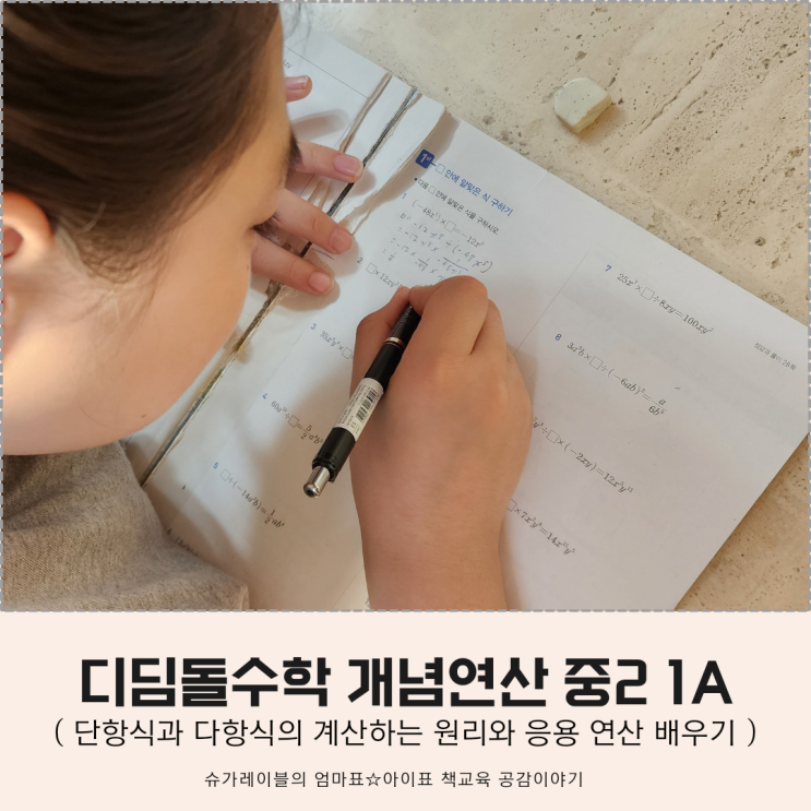모모프렌즈 5기 슈가레이블입니다. 오늘은 이번 주에 중2 수학 디딤돌 개념연산 문제집으로 단항식과 다항...