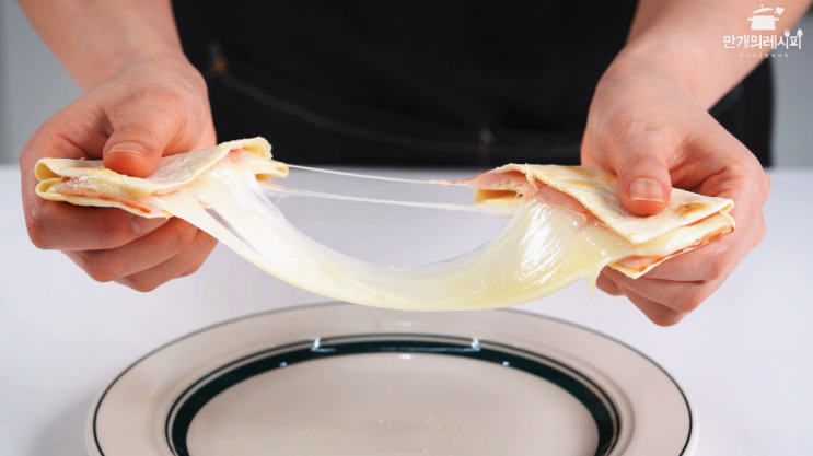 또띠아 접어서 간단하게 만드는 초간단 토스트 또띠아 안에 슬라이스 치즈와 햄을 넣어서 토스트기나 팬에 ...