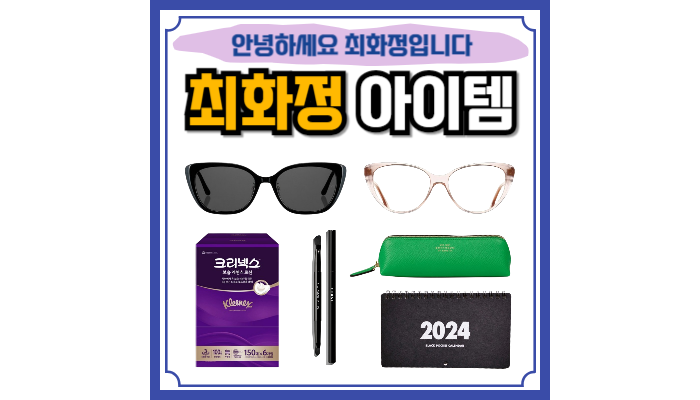 최화정 선글라스 티슈 크리넥스 보습에센스 휴지 안경 돋보기 샤넬 립 브러쉬 필통 스케줄표