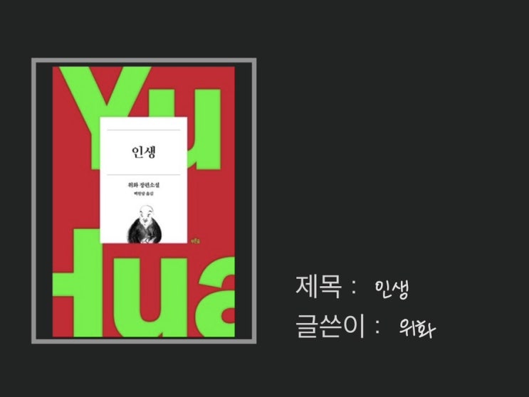 인생의 원제는 ‘살아간다는 것(活着)’이다. 매우 힘이 있는 말이며 개인과 운명의 우정이라고 저자는 말...