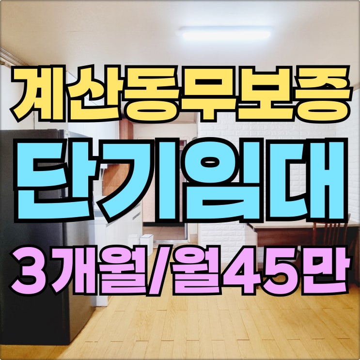 계산역무보증원룸 월세 45만원 3개월 단기 입주청소완료 안녕하세요. 인천 계양구 계산동 무보증원룸 전문...