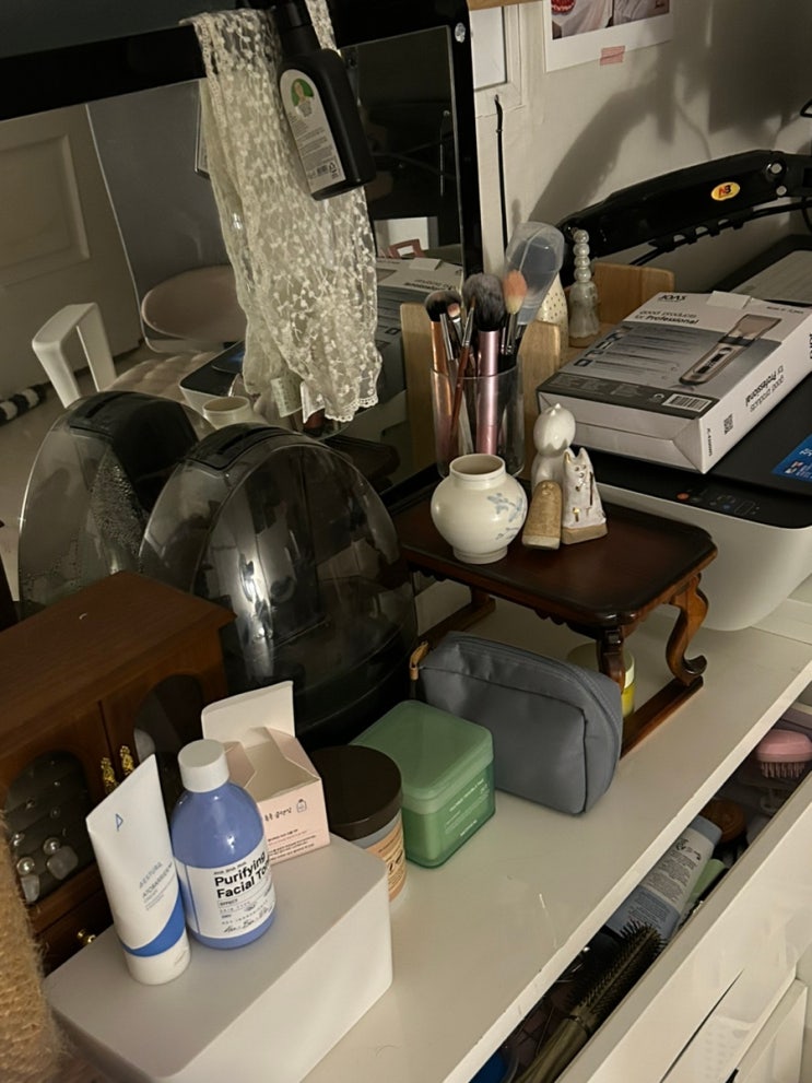 2024.02. < 서울 강남 청담동 미용실 주문제작 윈체스터월넛마감 메이크업 화장대 및 가벽설치 > #누...