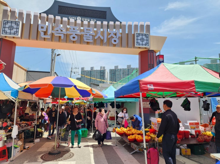 상추, 봄나물, 생선, 과일, 강정, 즉석 구이김, 채소 모종, 꽃, 노래 USB까지 다 있는 원주 풍물시장 오...