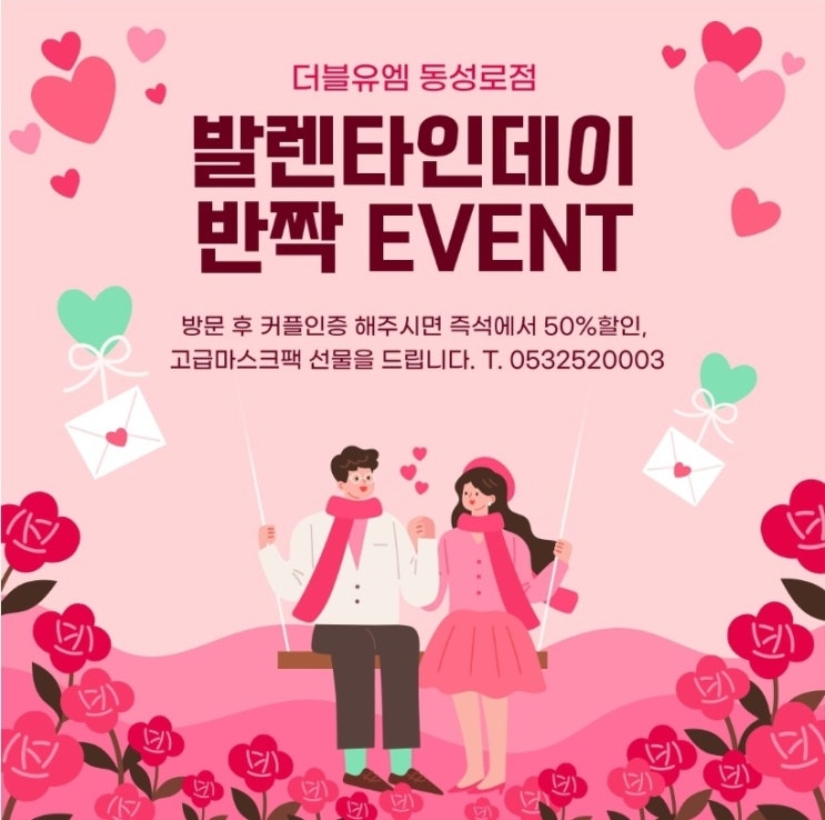 발렌타인데이 이벤트 두근두근 설레는 발렌타인데이에 #더블유엠동성로점 으로 오셔서 이벤트 혜택 받으세...