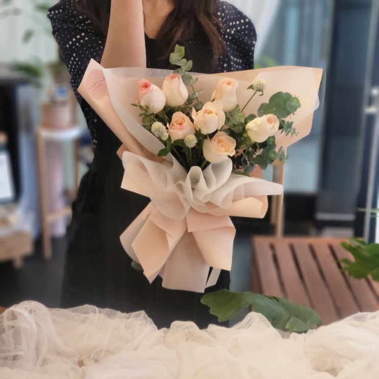 안녕하세요? 홍대꽃집 호노보노입니다:) 오늘은 온리 로즈 꽃다발 들고 왔어요. 피치 컬러의 장미 꽃다...