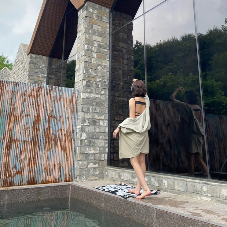 여성 래쉬가드 수영복 커버업 브랜드 추천 밸롭 커버업 후드자켓 베이지 착샷 후기
