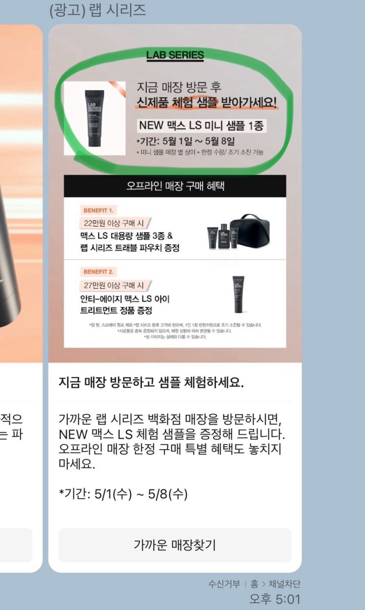 랩시리즈 LAB SERIES 매장방문시 신제품(new 맥스 ls 미니 샘플)체험 증정 이벤트(~24.05.08) 관...