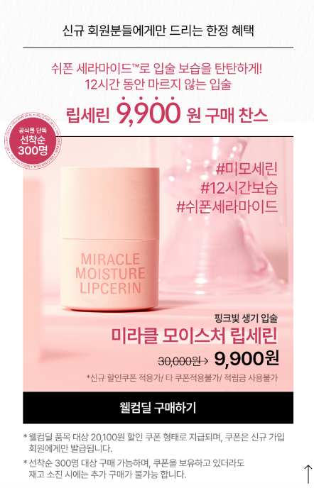 [신규딜/300명⭐] 오휘공식몰 신규회원만 립세린 ▼9900원!