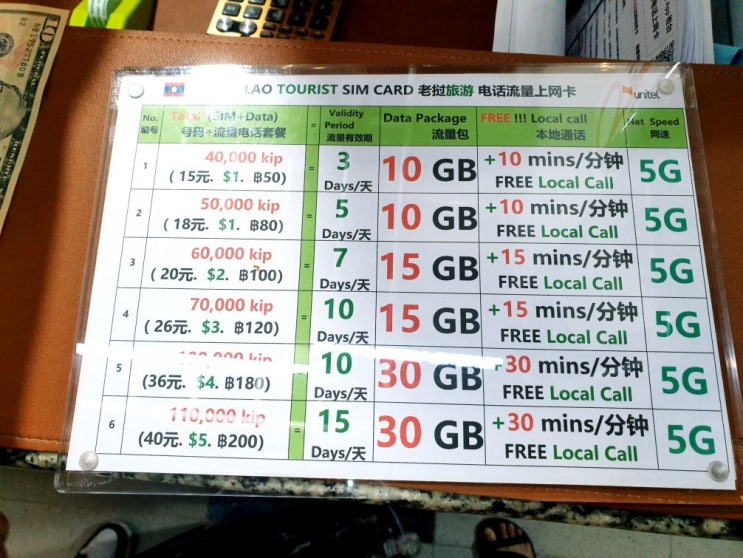 라오스 비엔티안 4박 6일 여행 #2: 왓따이국제공항, 유니텔 유심, 환전, 택시