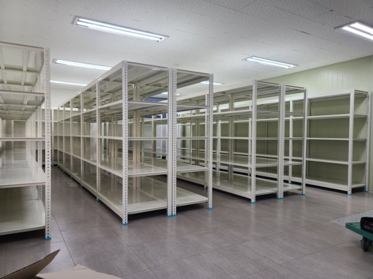 경기 성남시 분당구 판교동 소재 창고에 두껍고 깔끔하며 튼튼한 경량랙 철제 앵글로 수납 선반 설치입니다...