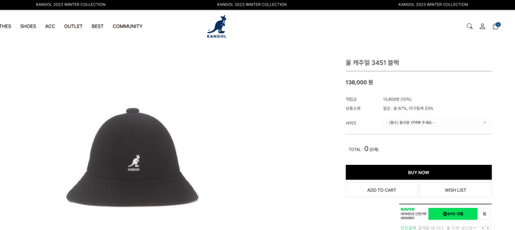 <모자> 캉골 울캐주얼 버킷햇ㅣ 착용샷