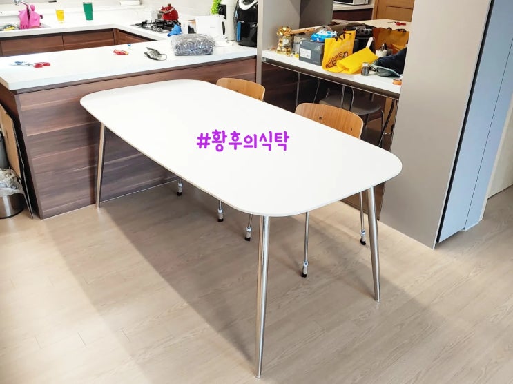 화이트 템바보드 포세린 통세라믹 식탁으로 주방 인테리어 완성!