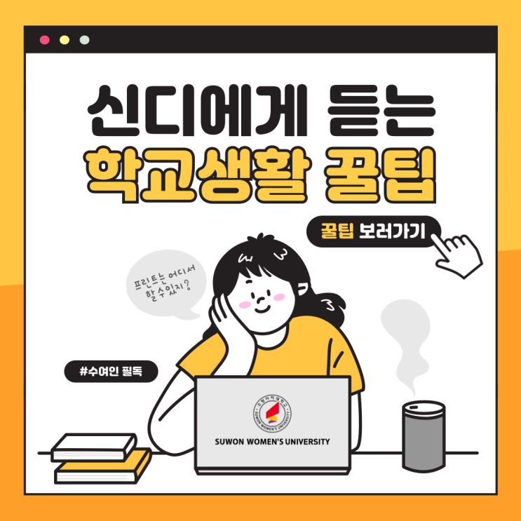 안녕하세요 학생 홍보대사 신디입니다?? 이번 포스팅에서는 수원여대에 프린터기가 어디에 있는지에 ...