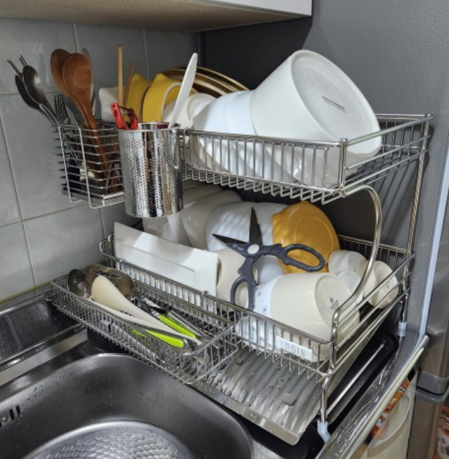 #로긴식기건조대 #올스텐식기건조대 기존에 쓰던 식기건조대는 가벼운 1단짜리 식기건조대 2개를 철사로 이...