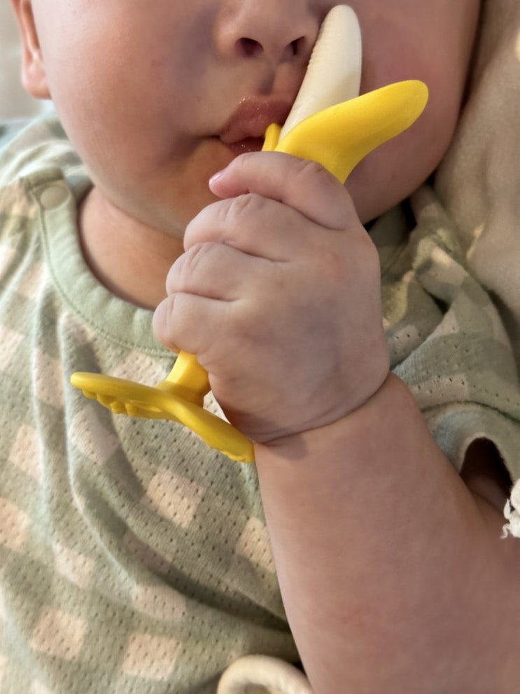 [앙쥬 치발기] 4개월 아기 치발기 사용 후기(바나나&수박)