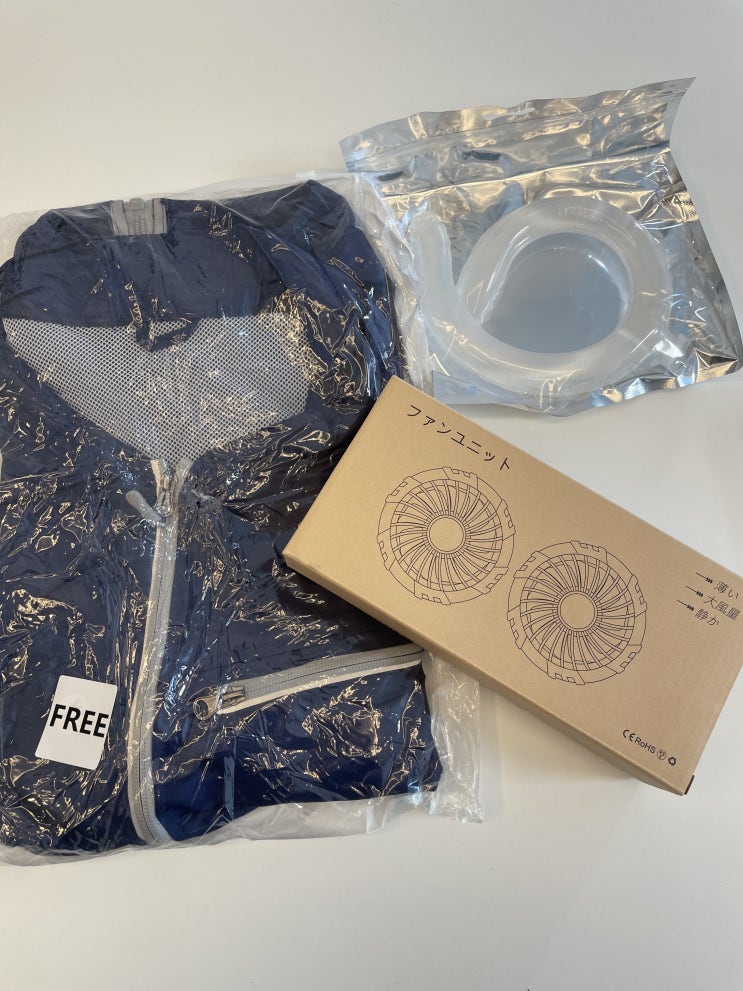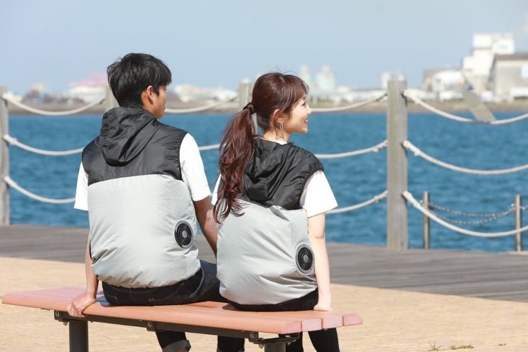[공조복] 선풍기 조끼 空調服(くうちょうふく) 잠바, 조끼 안에 전동 팬을 부착하여 휴대용배터리를 사용...