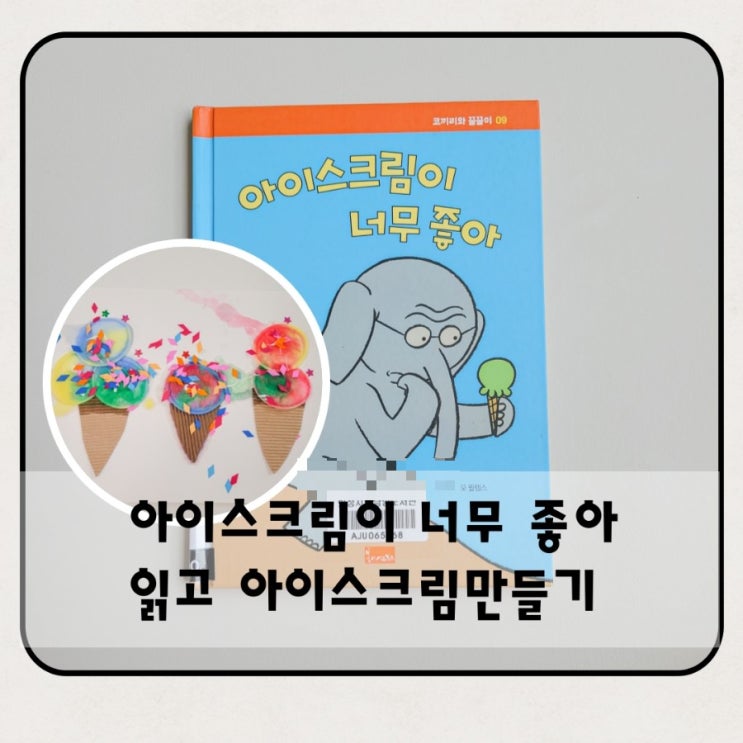 코끼리와 꿀꿀이 아이스크림이 너무 좋아 읽고 유아물감놀이 화장솜 아이스크림만들기