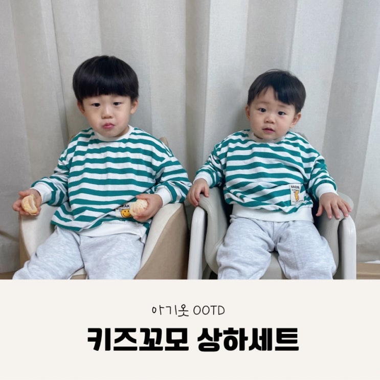키즈꼬모 아기옷 내돈내산 등원룩, 형제룩 (7호 11호 사이즈비교 착샷 &건조기사용)