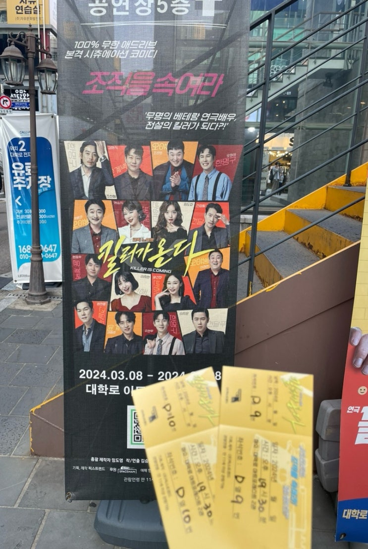 오랜만에 연극보러 혜화 오늘의 연극은 코믹느와르 [킬러가 온다] 내용 알고 보면 재미없을까봐 일부러 찾...