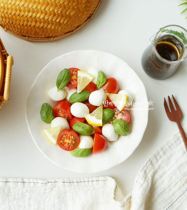방울 토마토 카프레제 샐러드 샐러드 발사믹소스 만들기 토마토 카프레제 보코치니 치즈 토마토 카프레제를...