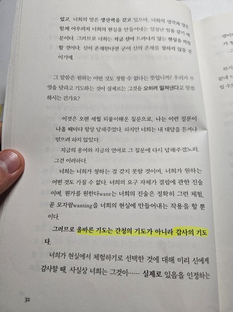 P.32 올바른 기도는 간청의 기도가 아니라 감사의 기도다. 현실에서 체험하기로 선택한 것에 대해 미리 신...