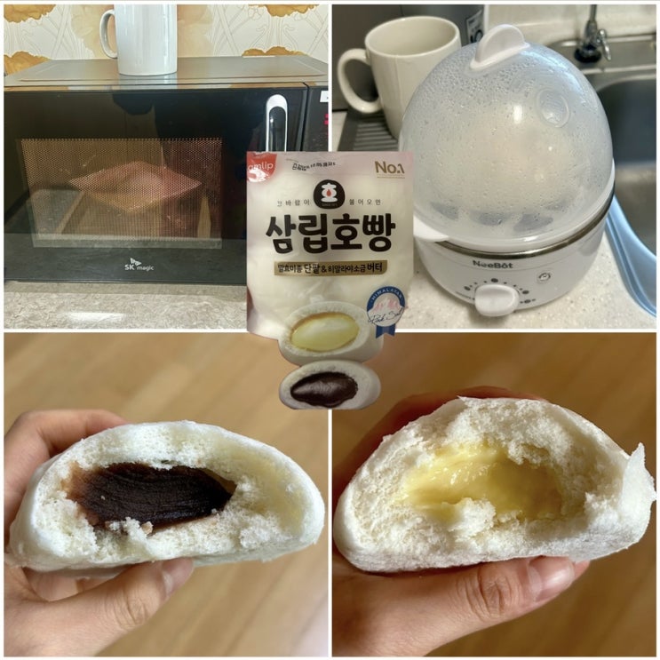 삼립호빵 히말라야 소금버터 신상과 팥맛 찜기와 전자렌지 버전 비교