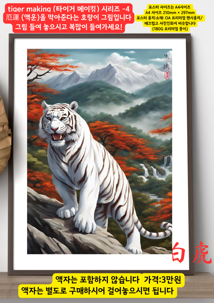 ??️ 백호 호랑이 포스터 그림액자 액운막는그림 호랑이그림 인테리어액자그림 백호그림 복을주는그림 ? 타이거메이킹-4