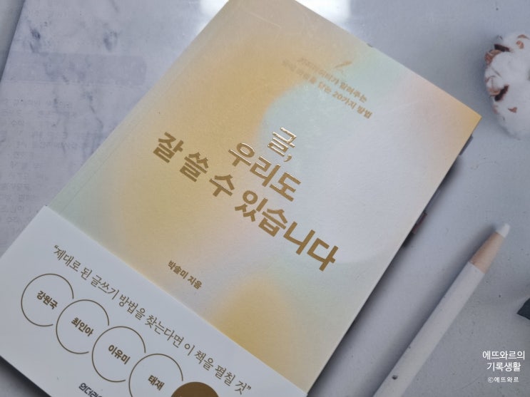 글, 우리도 잘 쓸 수 있습니다. 저자 박솔미 출판 언더라인 2024.04.29 글쓰기법에 대해 관심이 많아 종종 ...